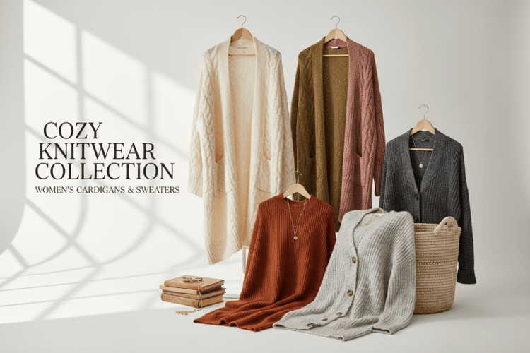 Discover our cozy collection of women's cardigans and sweaters. Perfect for layering or wearing alone, these pieces combine comfort with style. Soft fabrics, classic designs, and modern fits.