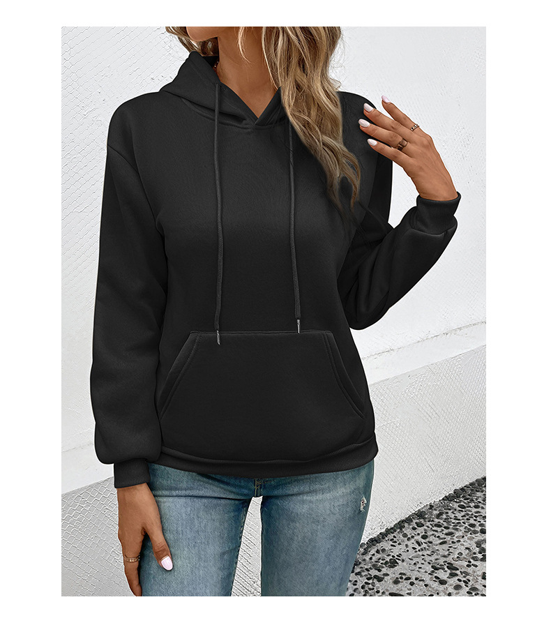This women's long-sleeved solid color hoodie is a perfect choice for the fall season. Comfortable and stylish wear that keeps you warm in milder temperatures.