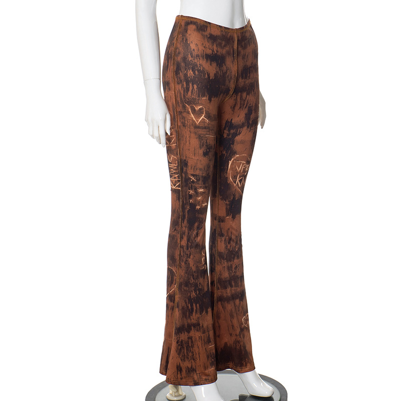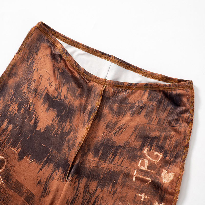 Letters Printed Mid Waist Cropped Exposed Casual Micro Elastic Trousers Women Spring Autumn