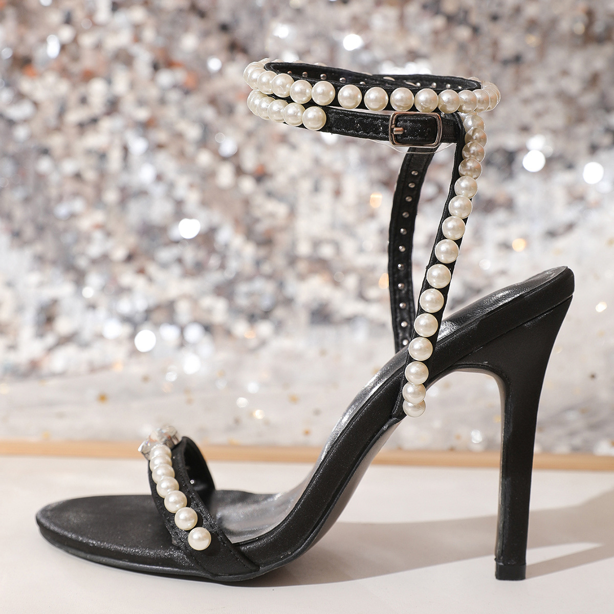 Pearl Strap Wedding Cocktail High Heels Summer All Match High Heel Sandals for Women