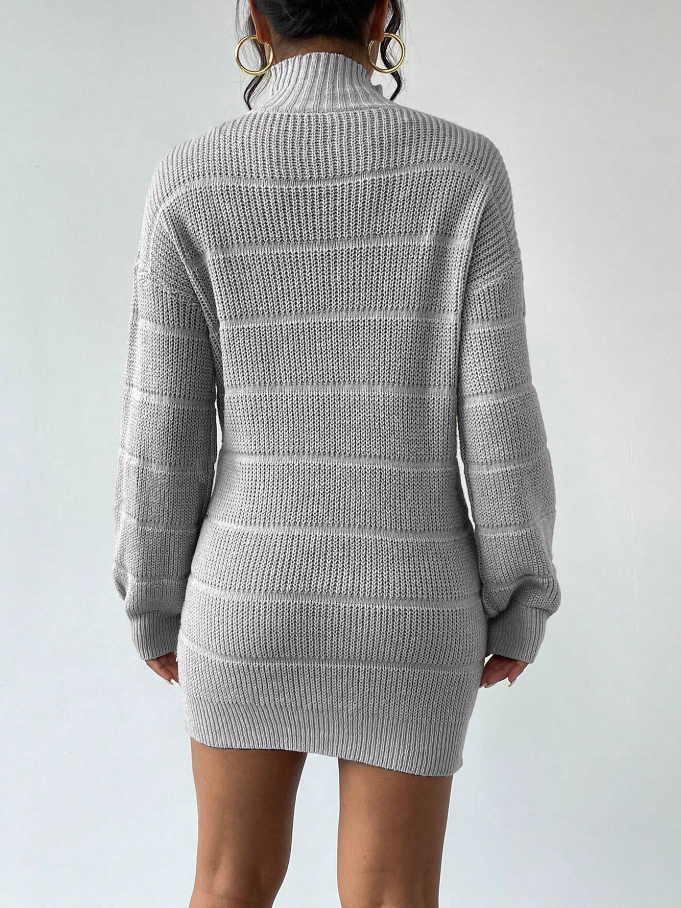 Autumn Winter Half Turtleneck Knitted Dress Women Clothing Fashionable Solid Color All Matching Chic Hip Dress