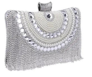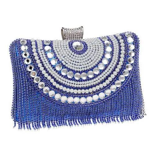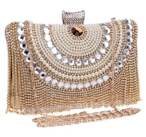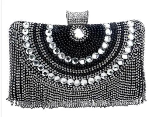 Rhinestones Tassel Clutch Diamonds Beaded Metal Evening Bags Chain Shoulder Messenger Purse Evening Bags For Wedding Bag