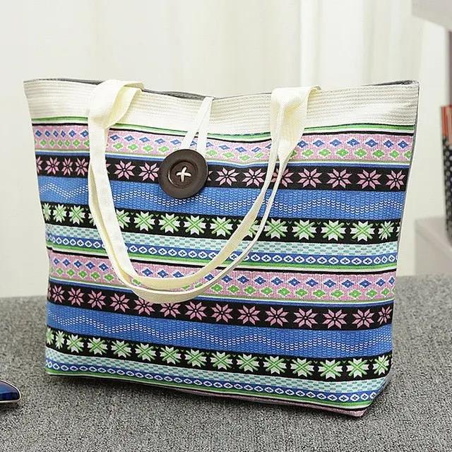 Women Handbag National Wind Printed Canvas Tote Casual Beach Bags Women Shopping Bag Handbags Bolsos Mujer