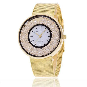 Women Rose Quartz Rhinestone Watch