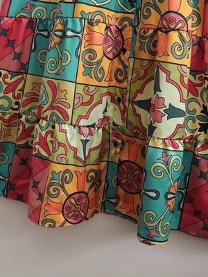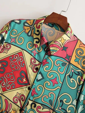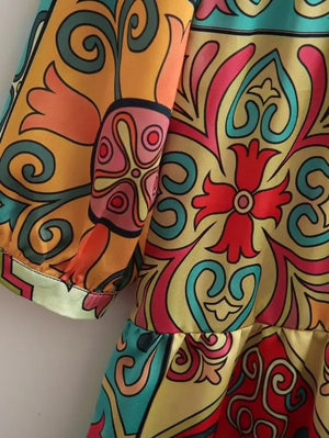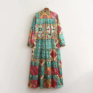 Women's New Printed Long Sleeve Shirt Dress Maxi Dress